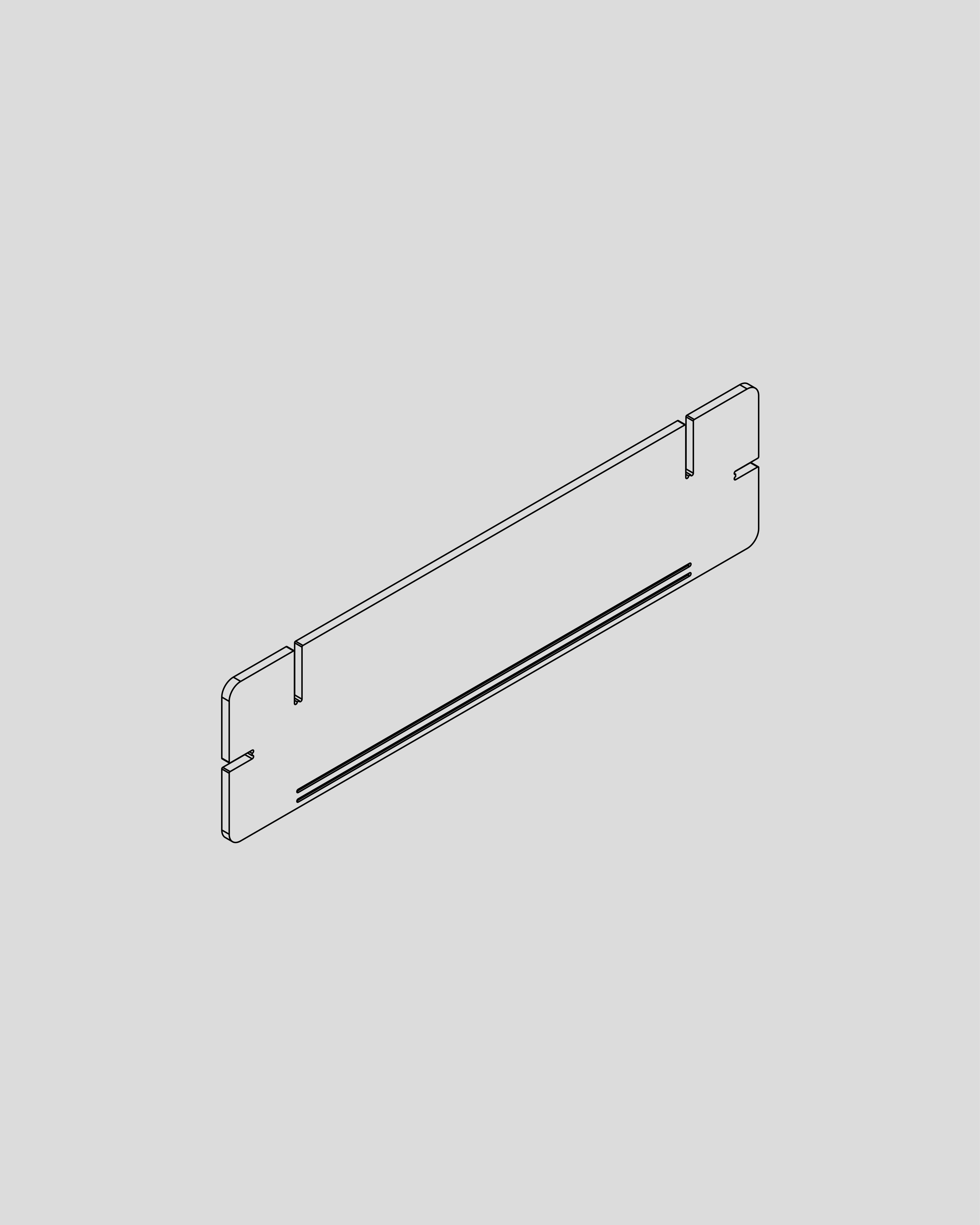 Place the bottom shelf on a flat and soft surface with the two slots pointing upward and the grooves towards you.