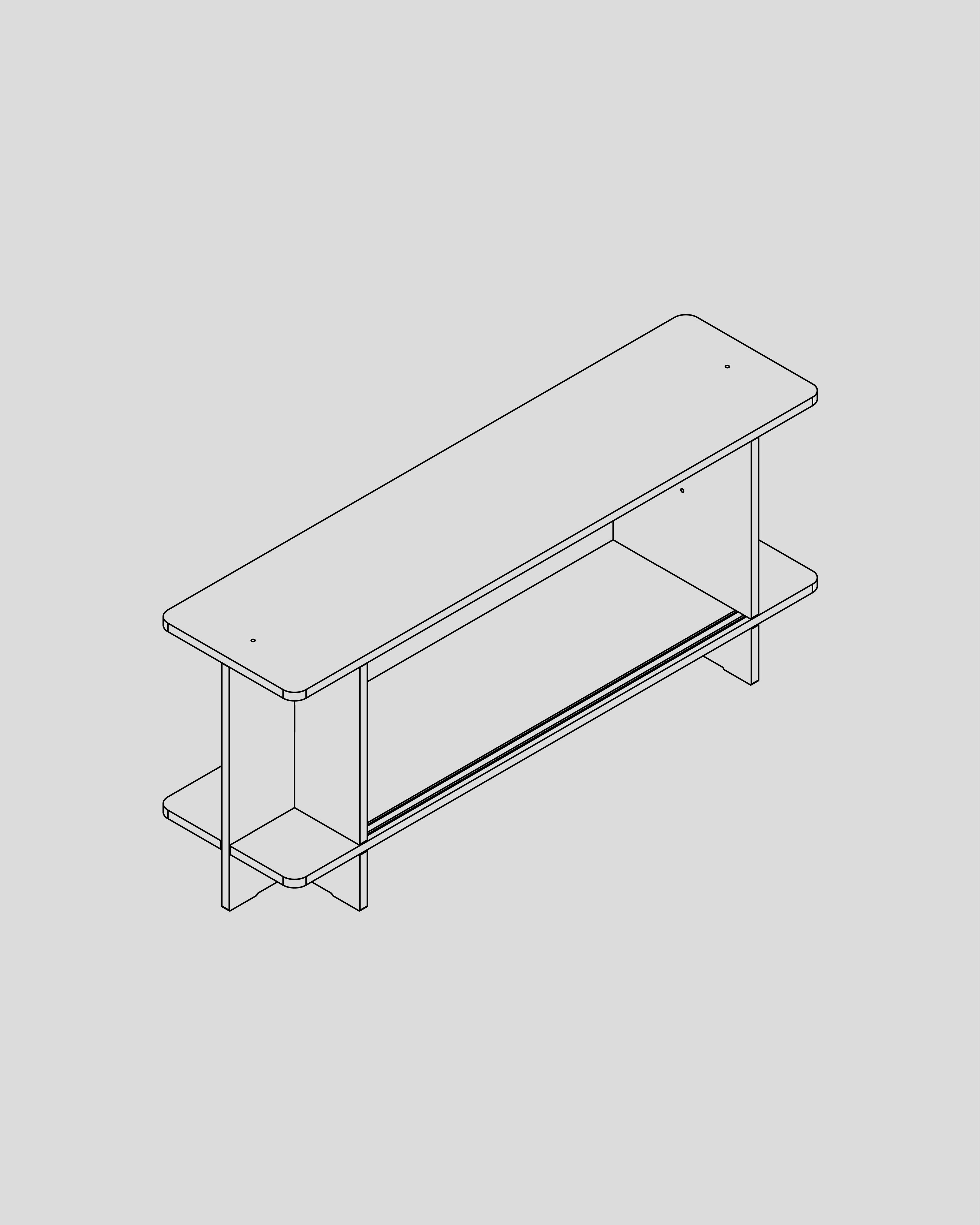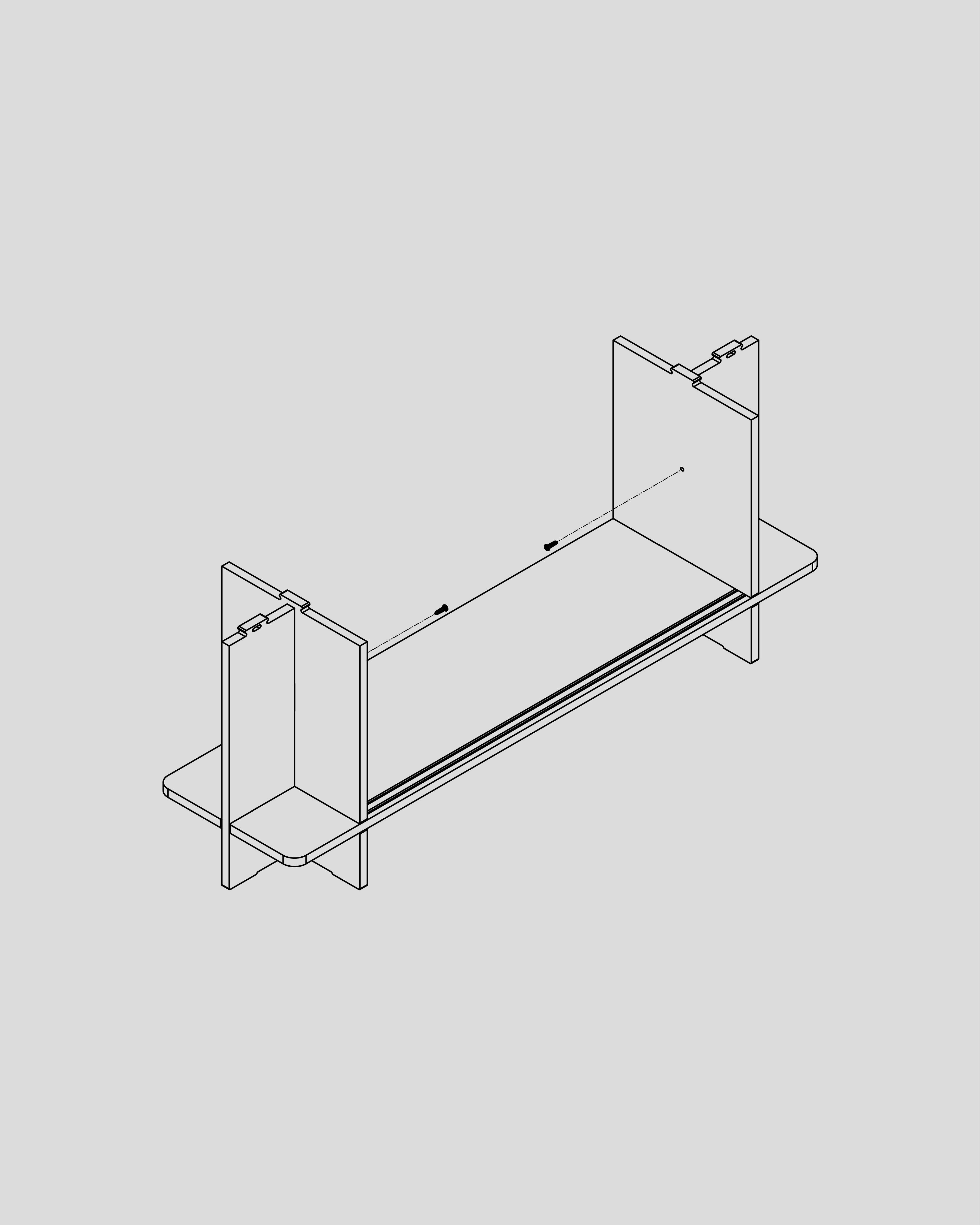 Using a non-electric flat-head screwdriver, drive in the two screws to secure the side pieces to the legs. Stop when the head sits flush with the surface; avoid over-tightening.