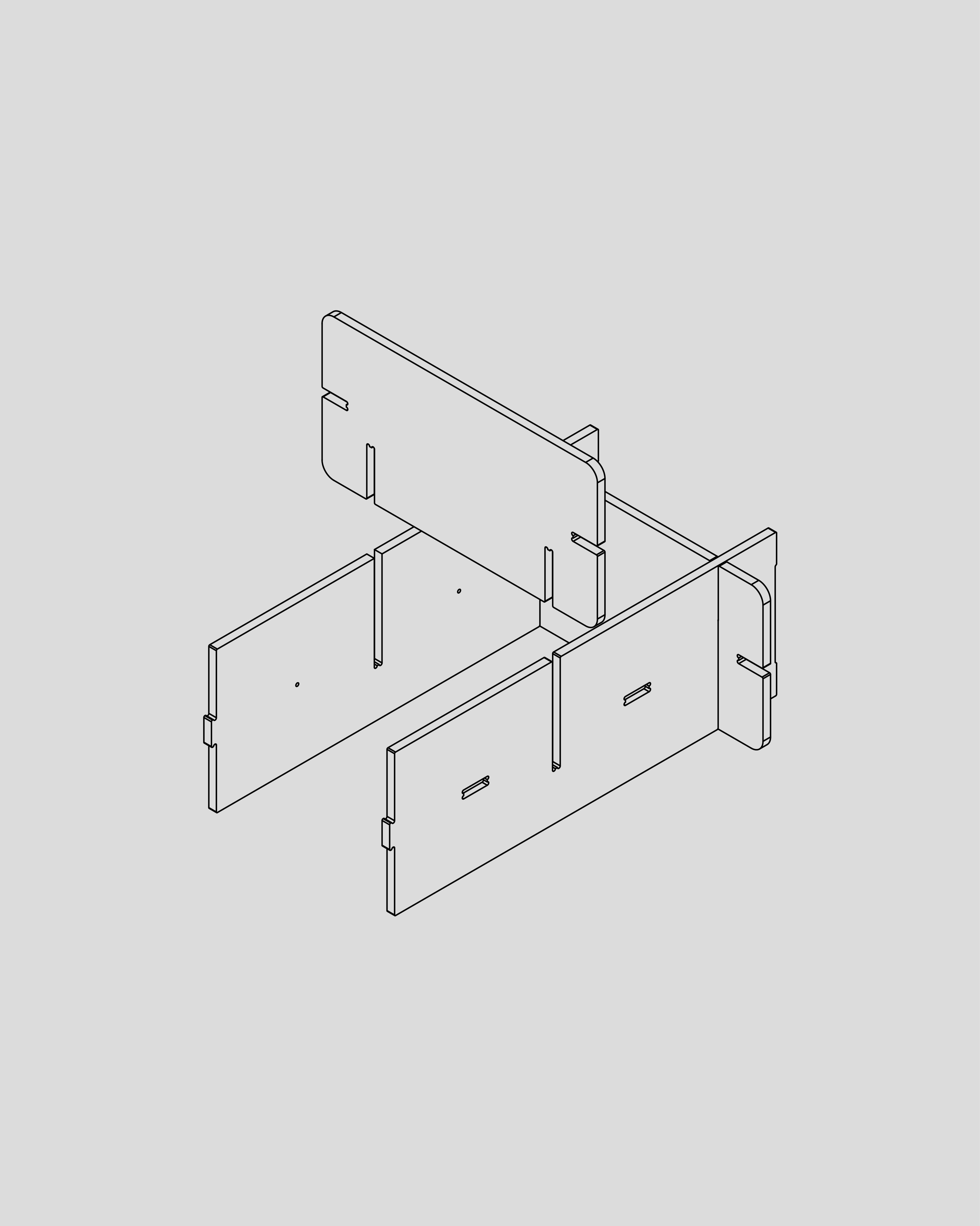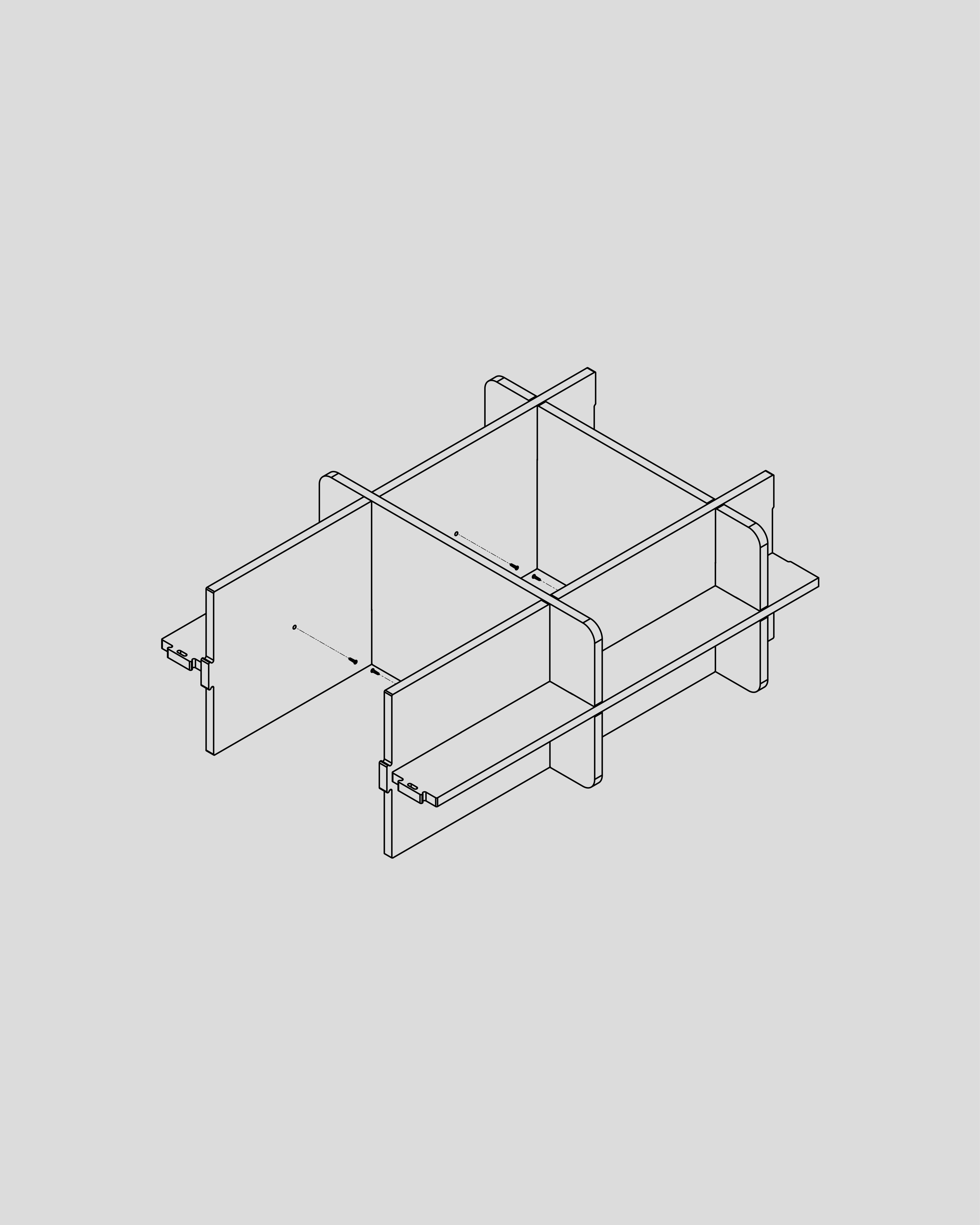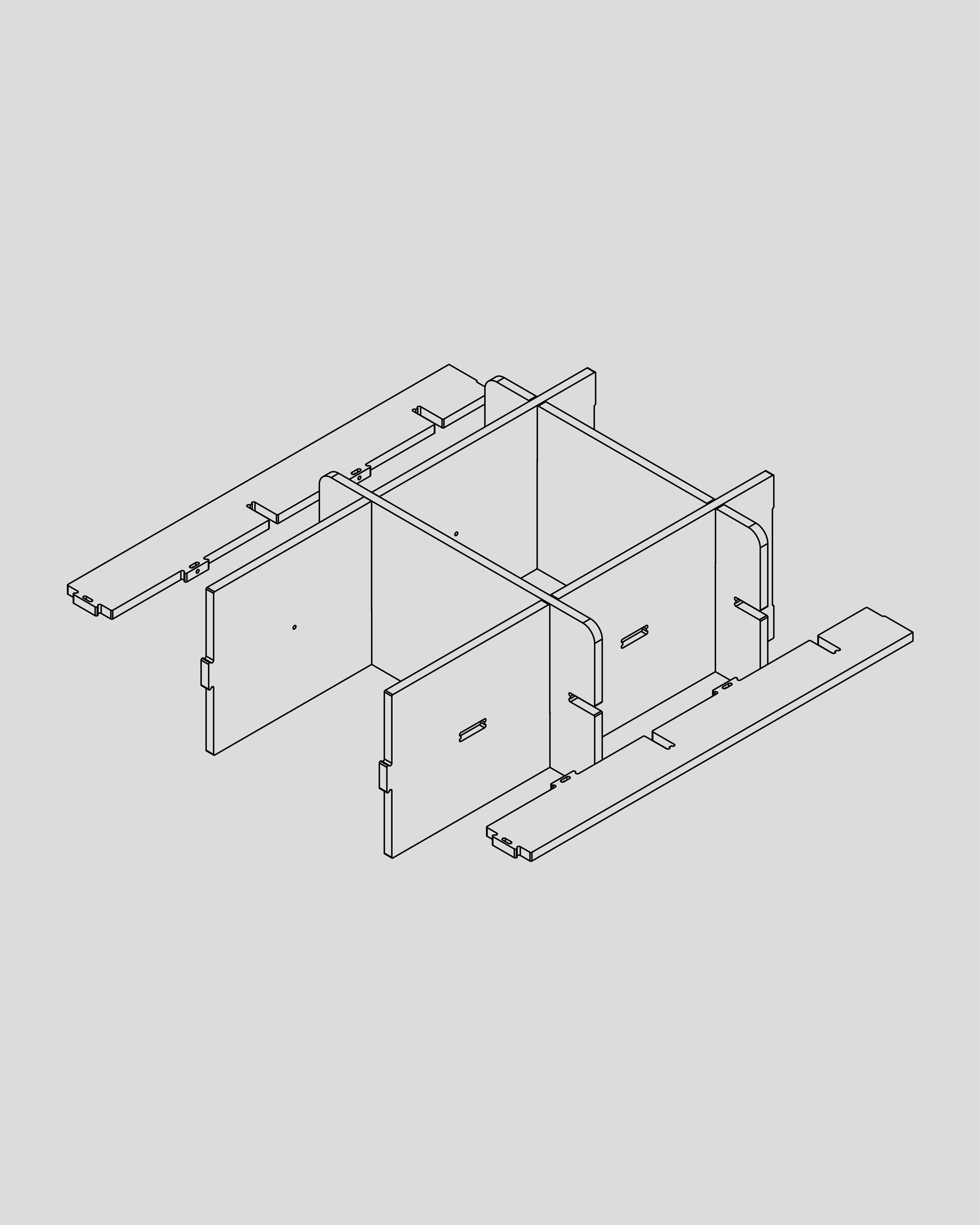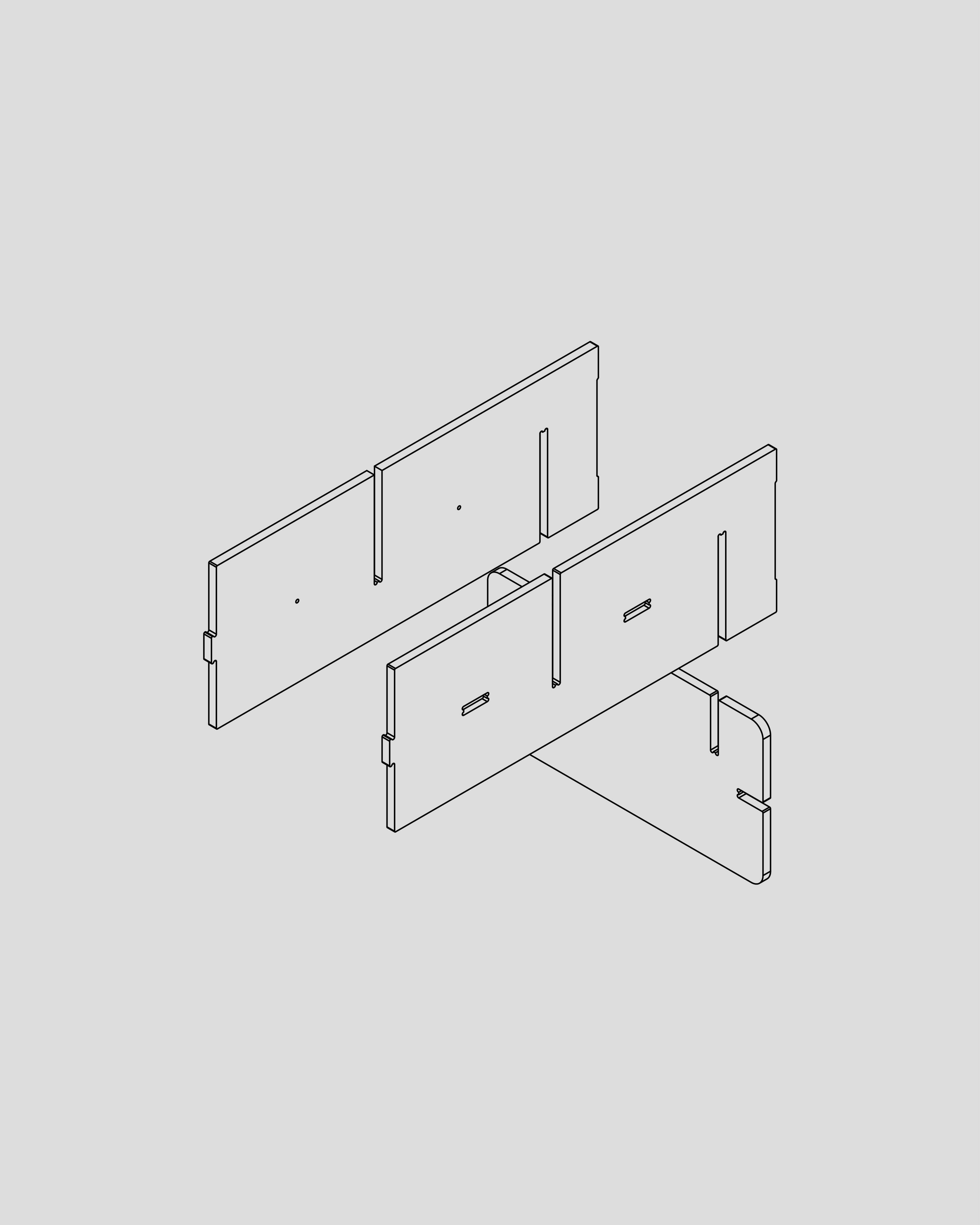 Set the shelf upright. Lower the top onto the legs and guide the tabs into their pockets. Take your time.