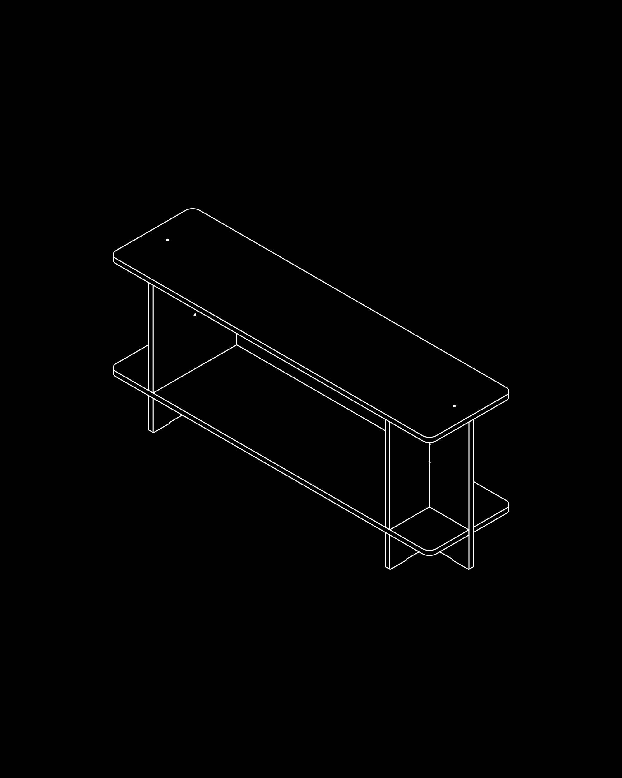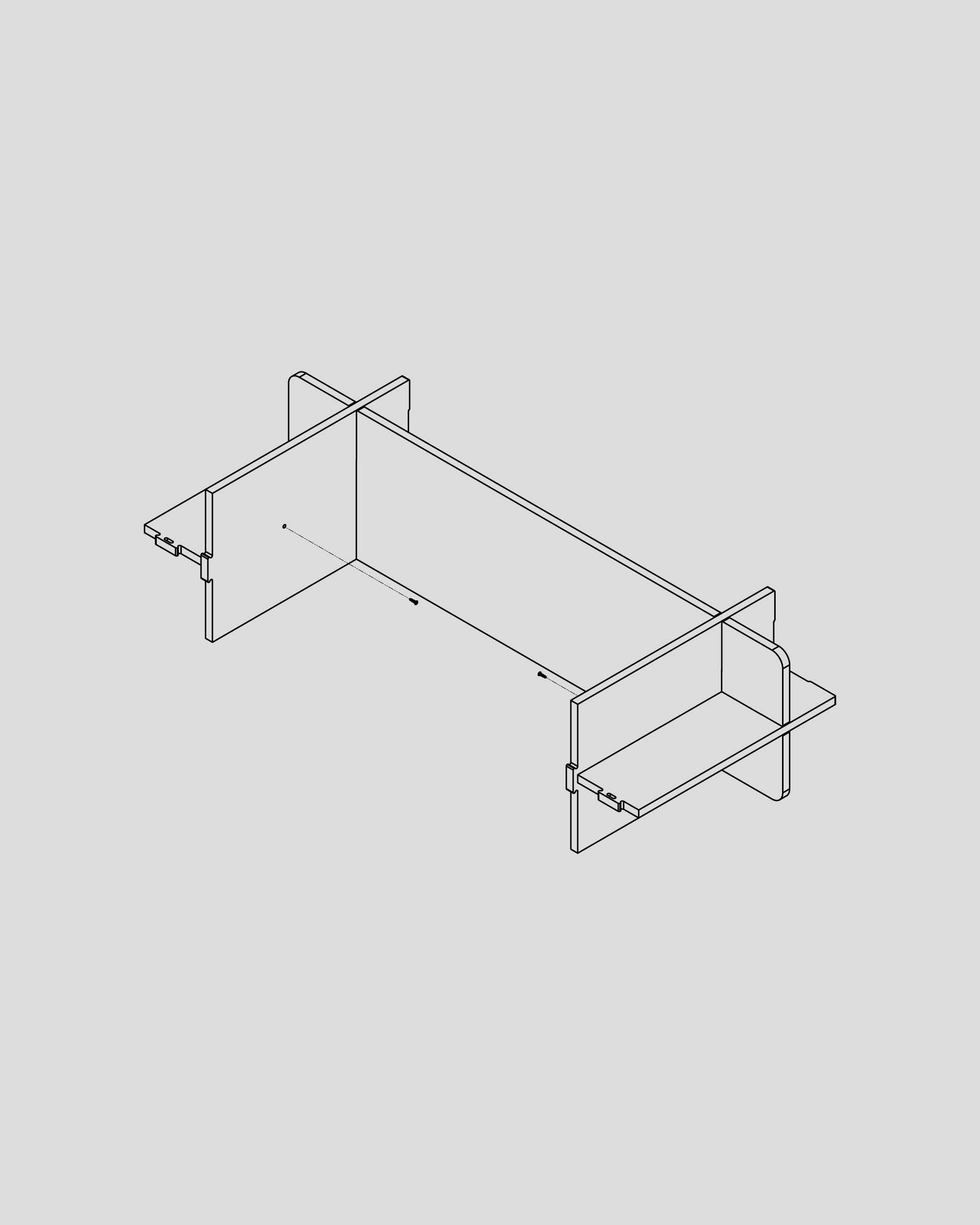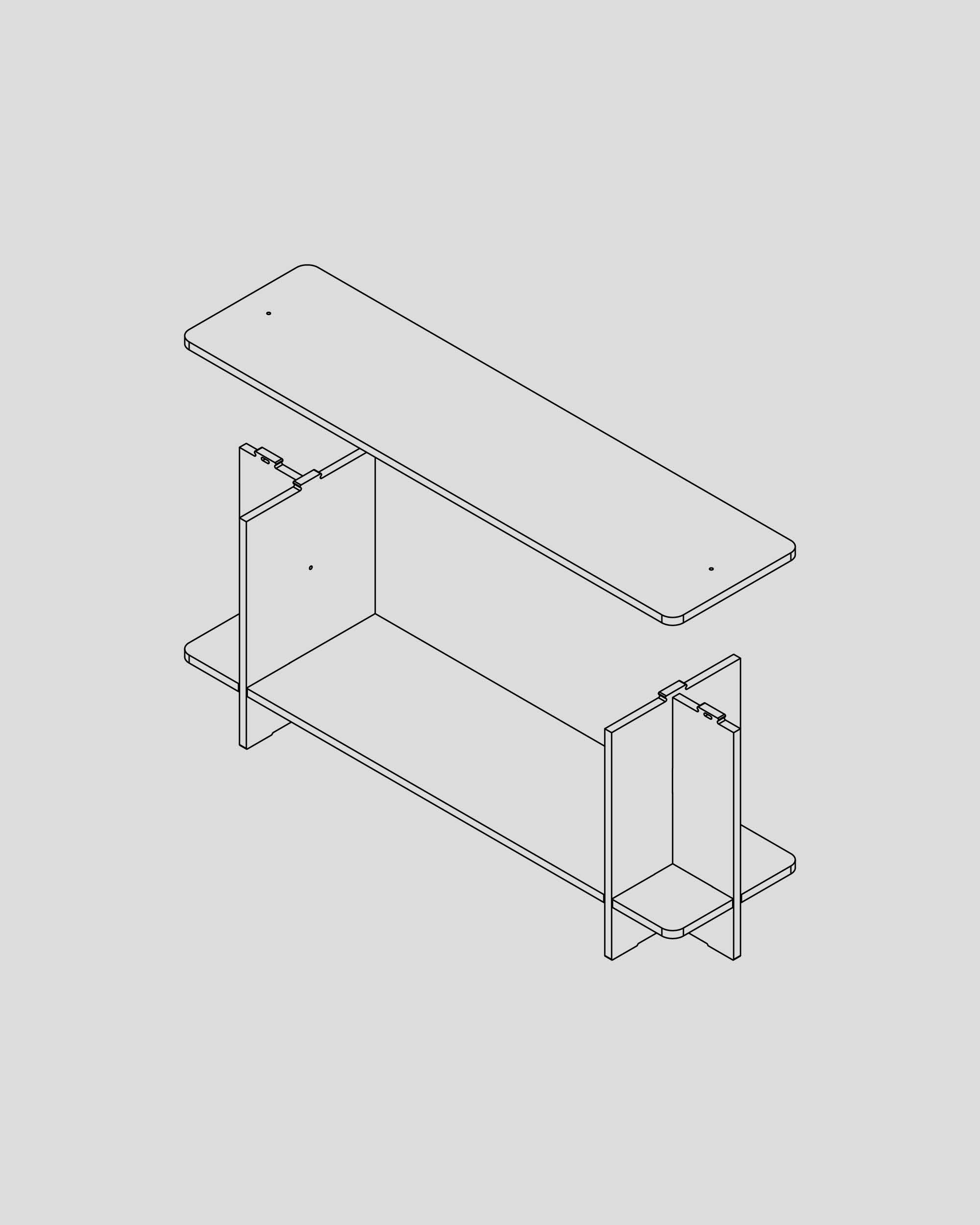 Place the bottom shelf on a flat and soft surface with the two slots pointing upward.