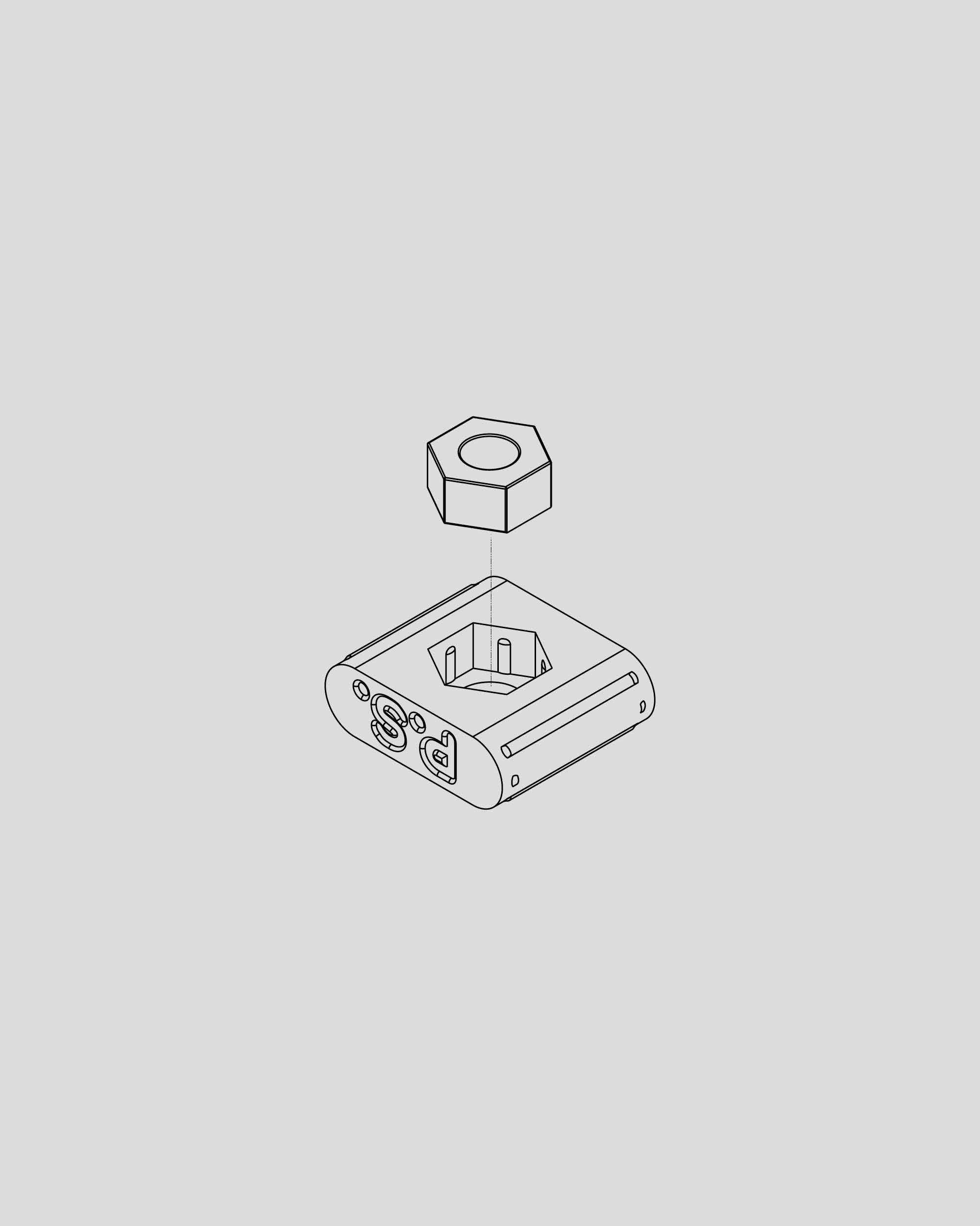 Insert the plastic housing with the nut inside, into the pill-shaped slot. Ensure it’s oriented as shown and no part is protruding. Repeat for all.
