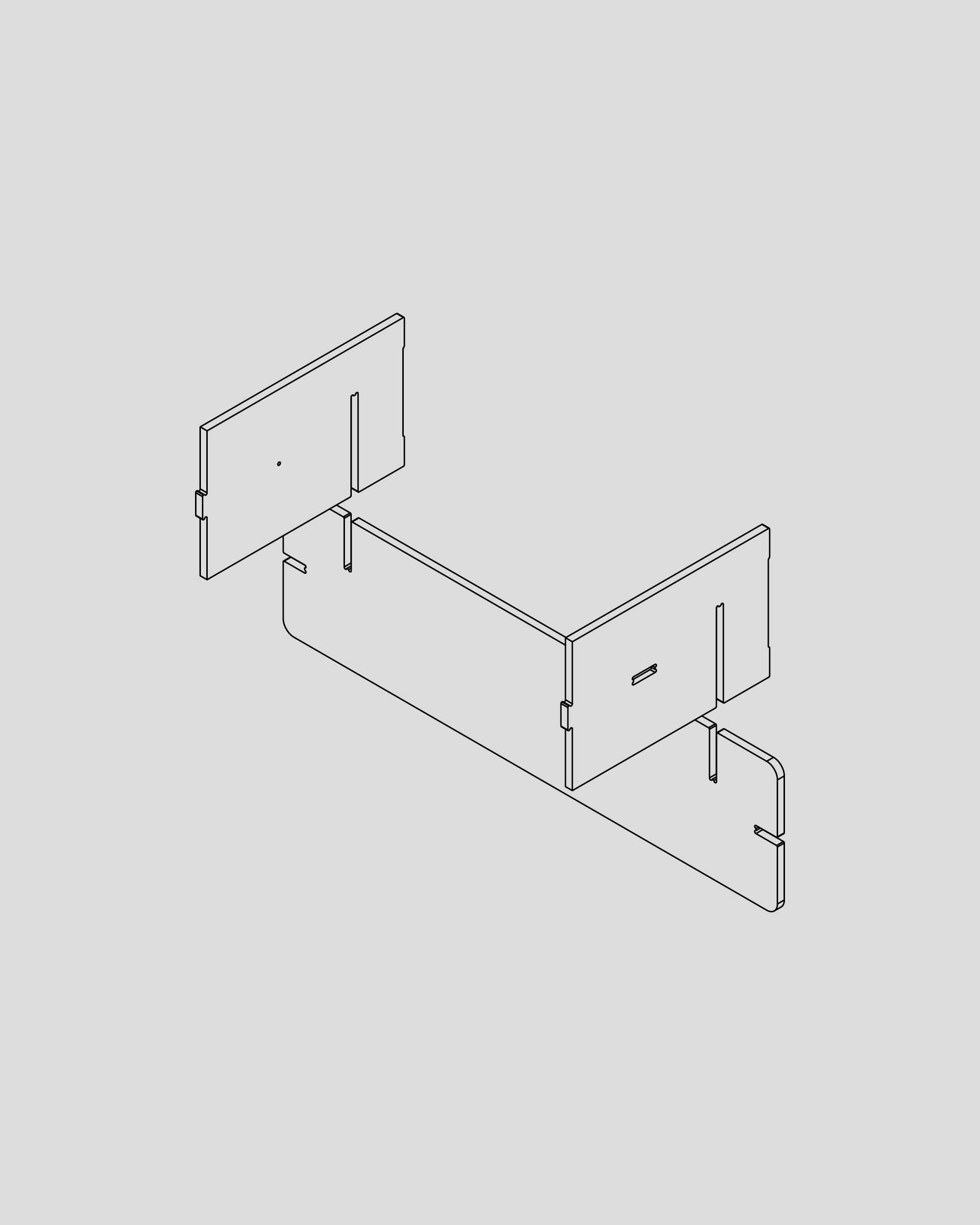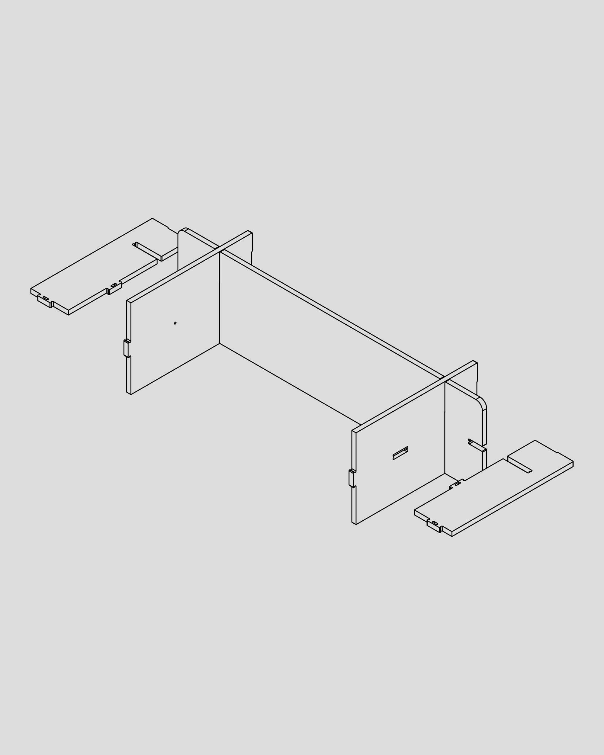 Set the sideboard upright. Lower the top onto the legs and guide the tabs into their pockets. Take your time.